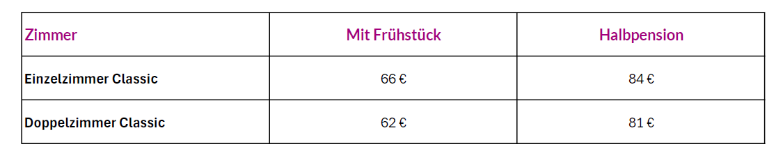 Preise gelten pro Person und Nacht